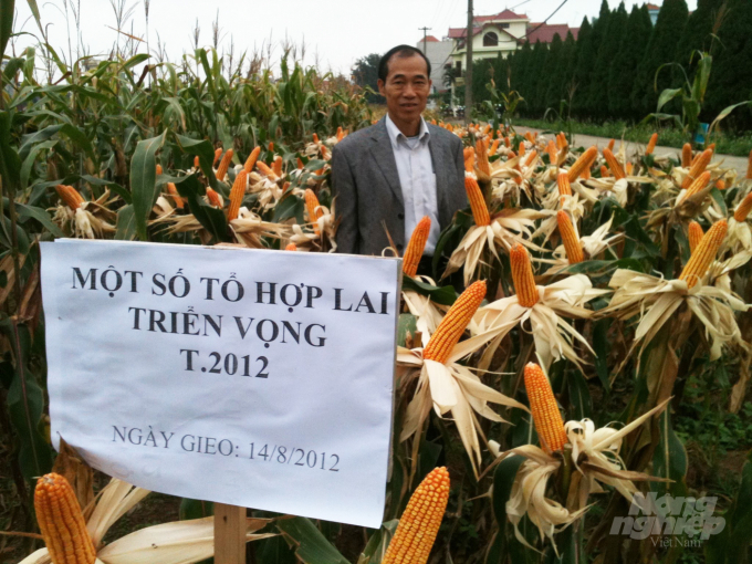 TS Phan Xuân Hào bên giống ngô LVN 4. Ảnh: Nhân vật cung cấp.