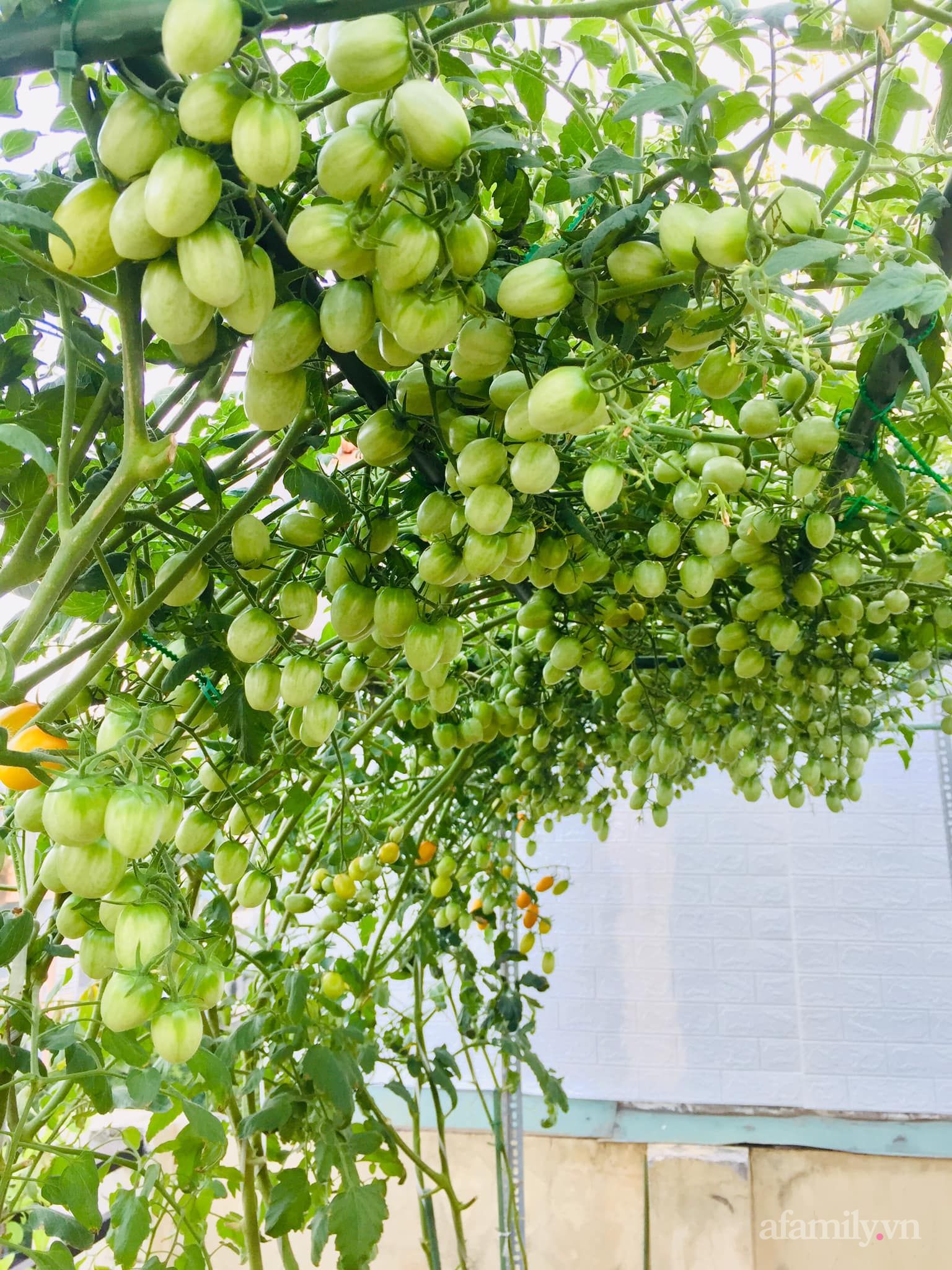 Được biết, khoảng vườn này của gia đình chị Ánh có diện tích là 50 mét vuông, được chị bố trí trồng cây rau củ quả kín hết cả lối đi. Chị Ánh cố tình tận dụng hết khoảng không gian có để trồng được nhiều loại theo ý thích của mình hơn. "Mình dành 2 tiếng mỗi ngày để chăm vườn. Công việc cũng đơn giản thôi, sau giờ làm việc thì ra vườn bắt sâu, tỉa lá, quấn dây dưa", chị Ánh chia sẻ.