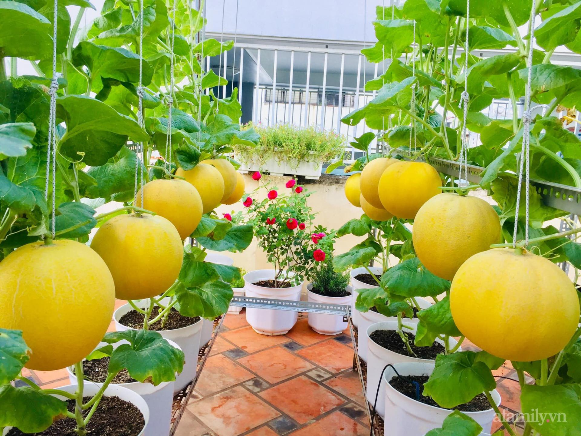 Dưa gang giống Việt được chị Ánh trồng thành công trên sân thượng của gia đình.
