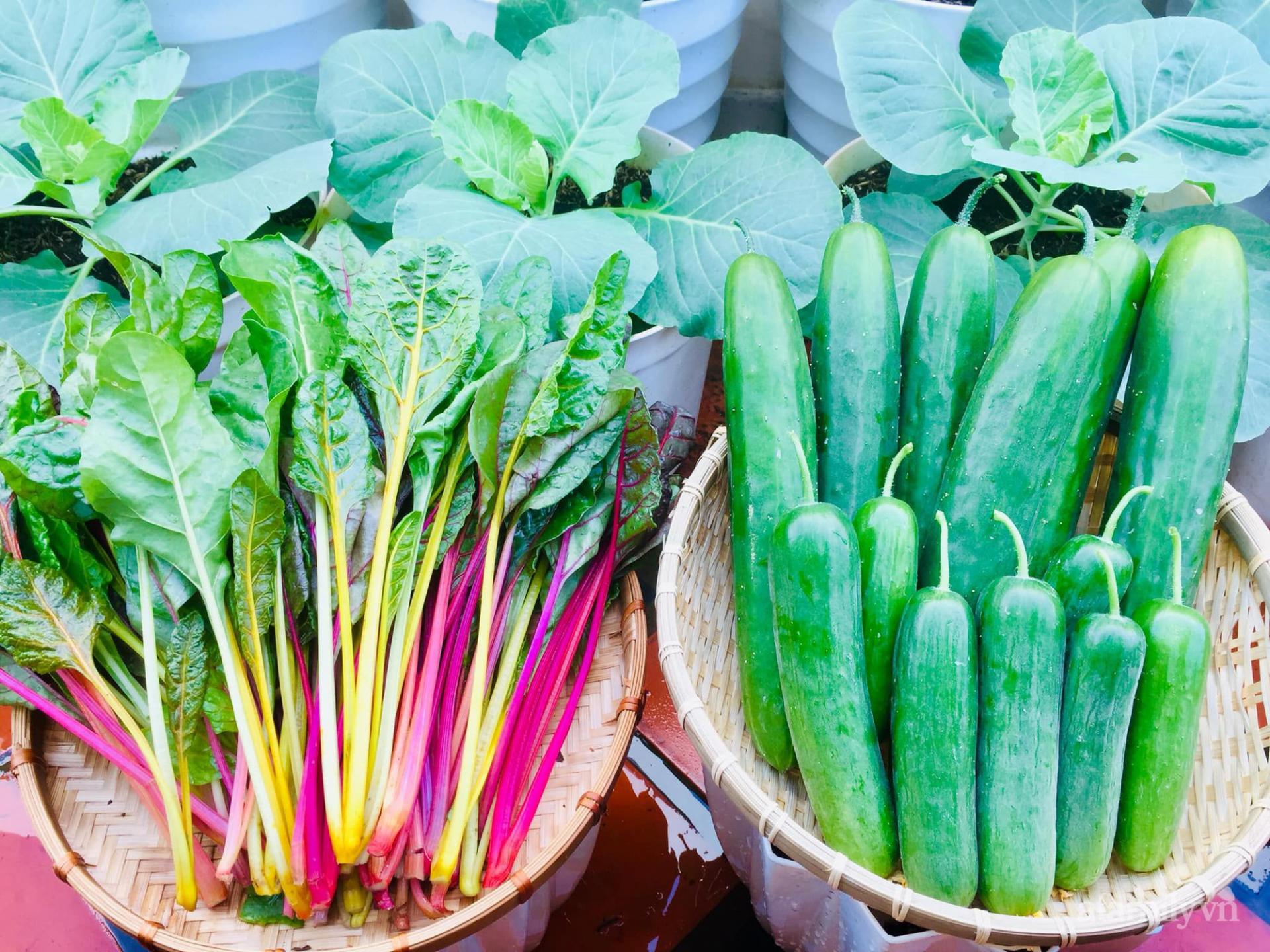 Mỗi lần thu hoạch là được cả rổ rau củ quả tươi.